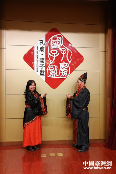 中國臺灣網10月20日北京訊 (記者 張露露)“玉不琢,不成器;人不學,不知義……飲水思源,師恩永存;傳道解惑,關懷備至……”孔廟大成殿前,百余名身著漢服的臺灣嘉賓宣讀尊師誓詞,通贊恭讀祭文,向至圣先師孔子行四拜高揖禮。