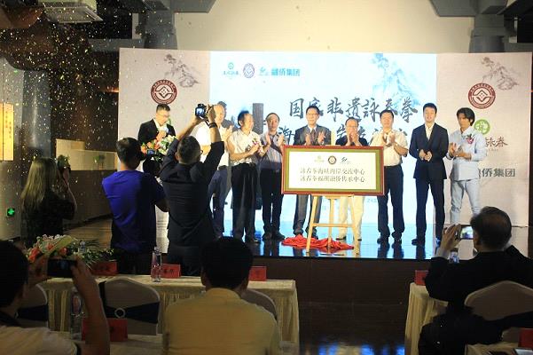 8月28日上午,國(guó)家非遺詠春拳海峽兩岸交流中心在福州成立并舉行揭牌儀式。(圖片來(lái)源:福建省臺(tái)辦)