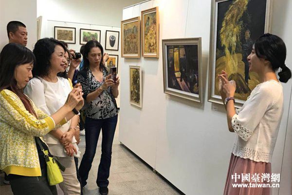 向觀眾介紹繪畫作品。(圖片來源:陜西省臺辦)
