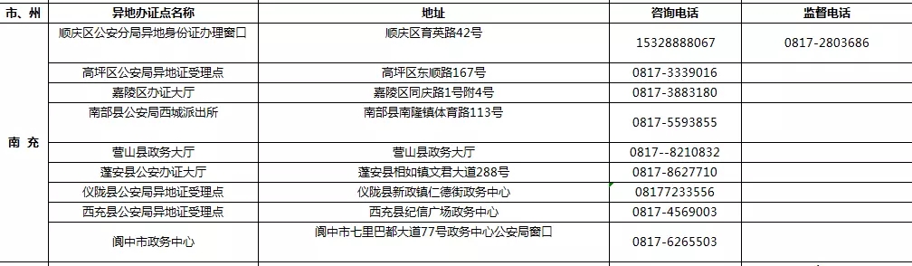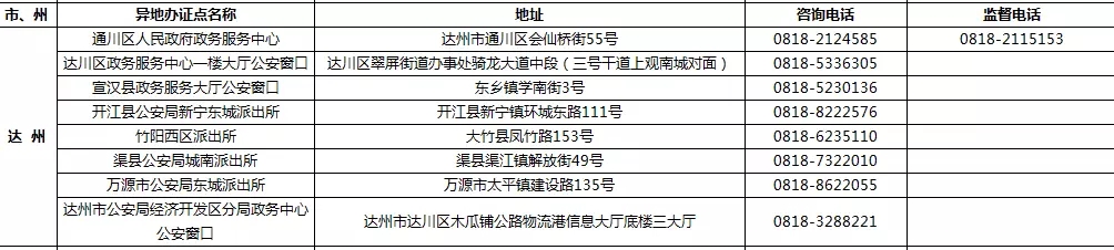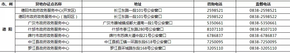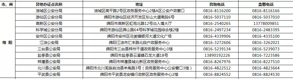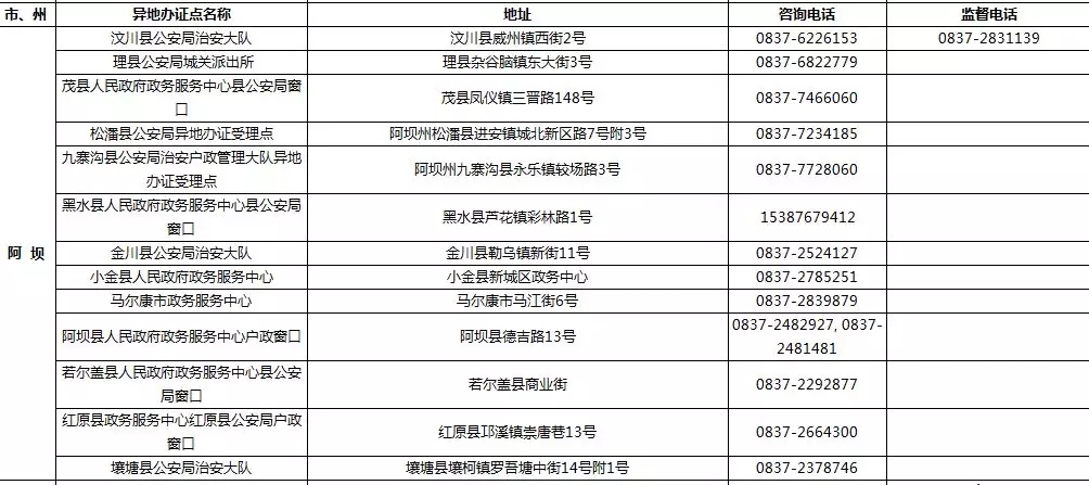 四川省港澳臺居民居住證受理點名稱、地址,咨詢及監(jiān)督電話: