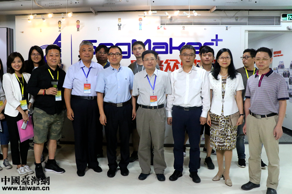 “海峽兩岸記者特區行”聯合采訪團一行參觀深圳賽格眾創空間。(中國臺灣網 尹賽楠 攝)