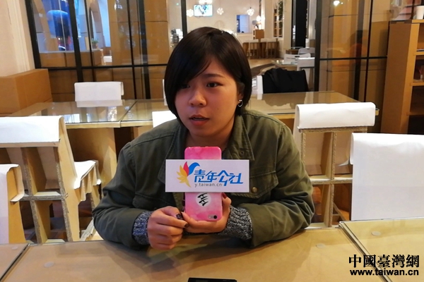 文創(chuàng)園內(nèi)在手創(chuàng)聯(lián)盟就業(yè)的謝筱涓接受記者采訪。(中國臺灣網(wǎng) 趙蓉 攝)
