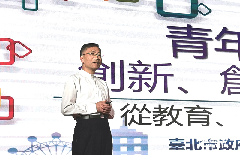 臺(tái)北市副市長蔡炳坤作主題演講。(圖片來源:上海市臺(tái)辦)