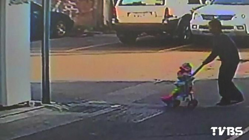 臺灣一位爺爺推著兩歲孫女在巷子散步,遇上警察追捕毒販,聽到槍聲嚇一大跳,但爺爺行動不便,走路速度非常慢。圖自TVBS網站