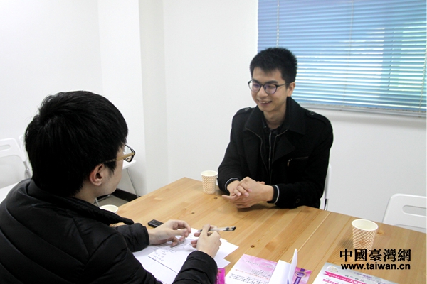 臺灣青年創客趙翌捷接受本網記者采訪。(中國臺灣網 于淼 攝)