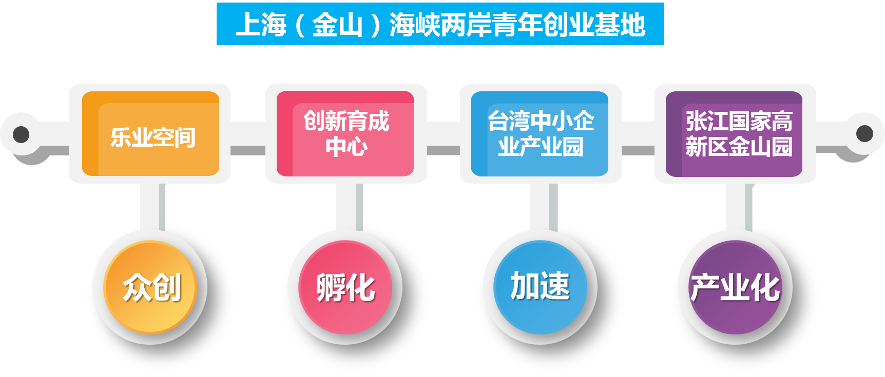 上海(金山)海峽兩岸青年創(chuàng)業(yè)基地是國務院臺辦于2015年10月設立的上海首個海峽兩岸青年創(chuàng)業(yè)基地,由樂業(yè)空間、創(chuàng)新育成中心、臺灣中小企業(yè)產(chǎn)業(yè)園、張江國家高新區(qū)金山園等四塊主要承載地組成,分別承載“眾創(chuàng)、孵化、加速、產(chǎn)業(yè)化”功能,打造“兩岸合作+公辦公益、政府支持+社會參與、眾創(chuàng)孵化+加速產(chǎn)業(yè)化、基地+基金”的全要素、全產(chǎn)業(yè)鏈的兩岸青年創(chuàng)新創(chuàng)業(yè)基地。截至目前,基地已有45個創(chuàng)新創(chuàng)業(yè)項目(其中臺資項目13個)注冊落戶,總注冊資本2.5億元人民幣、4300萬美元。