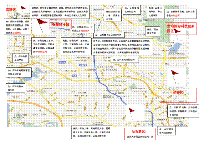 “學(xué)府創(chuàng)新創(chuàng)業(yè)走廊”:西起云南省昆明市高新技術(shù)開發(fā)區(qū),沿學(xué)府路,東至云南空港國際科技創(chuàng)新園、呈貢大學(xué)城、經(jīng)濟(jì)技術(shù)開發(fā)區(qū)的“一廊四片”創(chuàng)新創(chuàng)業(yè)發(fā)展新格局。近期主要打造以金鼎科技園為核心,昆明市高新技術(shù)開發(fā)區(qū)和學(xué)府路昆明理工大學(xué)等高校為支點(diǎn)的創(chuàng)新創(chuàng)業(yè)聚集區(qū)。中遠(yuǎn)期打造輻射云南空港國際科技創(chuàng)新園、呈貢大學(xué)城、經(jīng)濟(jì)技術(shù)開發(fā)區(qū)等為核心的創(chuàng)新創(chuàng)業(yè)聚集區(qū)。