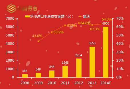 2007年以前,海淘還處于萌芽期,小而散,2007年淘寶全球購上線,海淘正式進入人眼前,但依舊帶有灰色色彩,資本對該行業投資較為謹慎。根據艾瑞咨詢統計,2008年以來,跨境進口電商交易額年復合增長率達50%以上。2014年,交易額預計超過6000億元,預測未來三年年復合增長率仍高達35%。國內跨境進口電商熱持續升溫,政策支持陽光海淘,各路資本蜂擁而至。