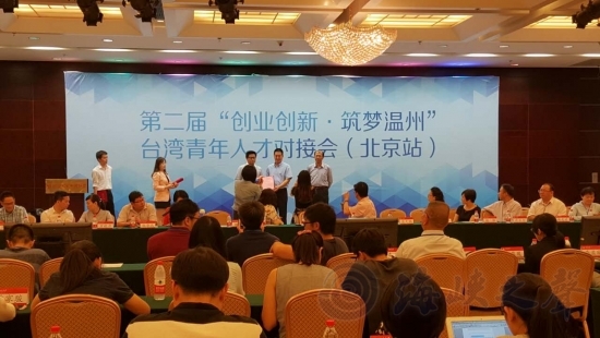 海峽之聲網北京訊(記者楊娜)5月18日下午,由溫州臺灣青年創業就業服務中心舉辦的2016“創業創新 筑夢溫州”臺灣青年人才對接會在北京舉辦,活動吸引了150多位在京高校深造的臺籍博士生、碩士等參加。