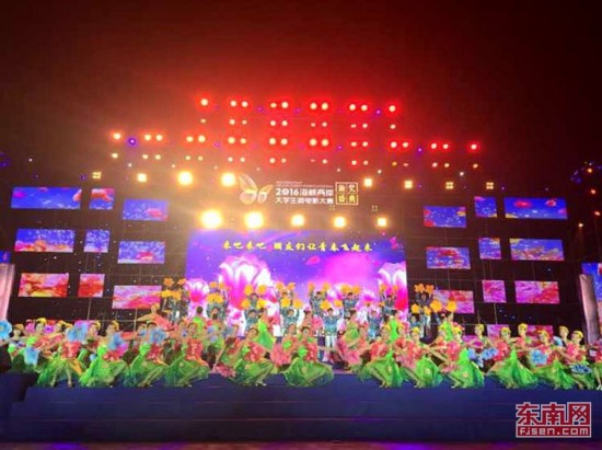 為促進兩岸大學生交流與合作,一同打造青年文創交流平臺,11月19日晚,2016年海峽兩岸大學生微電影大賽頒獎典禮在閩南師大弦歌廣場舉行。