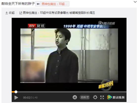 就連早期的大胖子視頻也在微博大方分享,原來(lái)男神以前也是胖子也是屌絲啊,多么激勵(lì)人的視頻,所以說(shuō)每個(gè)胖子都是潛力股,各位女孩們趕緊珍惜身邊的胖子吧!