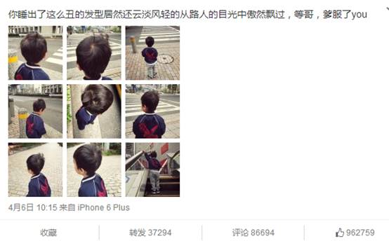 調(diào)侃式的秀恩愛(ài),與眾不同,超哥經(jīng)常就是這樣找抽,粉絲們看到都為娘娘教訓(xùn)他,簡(jiǎn)單的一句話加配圖就輕易的調(diào)動(dòng)起粉絲的熱情,也許這就是"二"的能量吧!