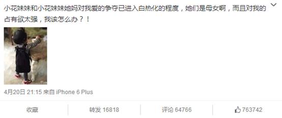 曬完男娃曬女娃,超哥這是在拉仇恨吧,男女雙全人生贏家啊!超哥最有意思的就是極度自信的文案和調(diào)侃調(diào)性,最后的結(jié)尾總會(huì)拋出疑問(wèn)讓粉絲忍不住說(shuō)他兩句,這就是他的魅力,不信,看看他的粉絲留言。