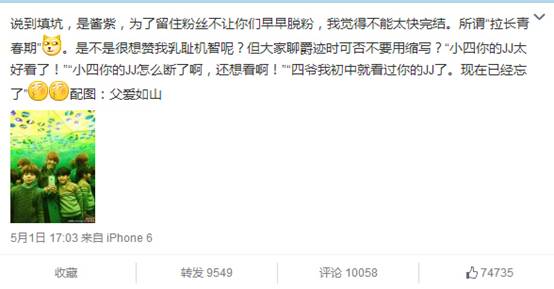 不定期的就發(fā)布互動(dòng)微博,讓社員們一起聊天,有著這樣關(guān)心自己的社長(zhǎng)讓粉絲們都有歸屬感,所以說(shuō)明星現(xiàn)在也是要接地氣,不斷地調(diào)動(dòng)粉絲的積極性,才能夠真正的留下粉絲