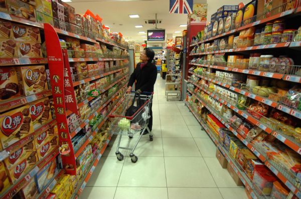 A woman chooses foods in a supermarket in Hangzhou, capital of east China's Zhejiang Province, Feb. 15, 2011. (Xinhua/Huang Zongzhi)