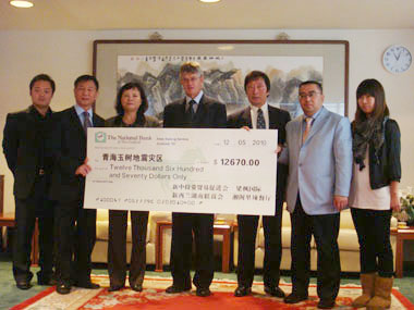 中新網(wǎng)5月12日電 據(jù)中國外交部網(wǎng)站消息,5月3日,新西蘭新中貿(mào)易促進(jìn)會、新西蘭湖南聯(lián)誼會、湘閣里辣餐廳、梁楓國際共同舉辦慈善晚會,為青海玉樹地震募集了12,670新元的捐款。