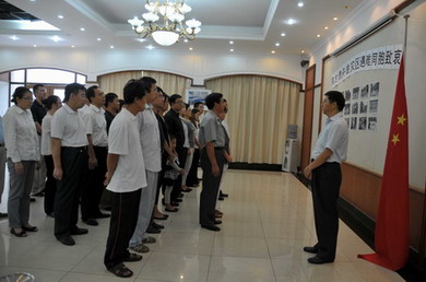 當地時間上午10點,使館臨時代辦付吉軍帶領使館全體館員和家屬以及駐坦首席軍事專家辦公室人員集體默哀,深切哀悼舟曲遇難同胞。