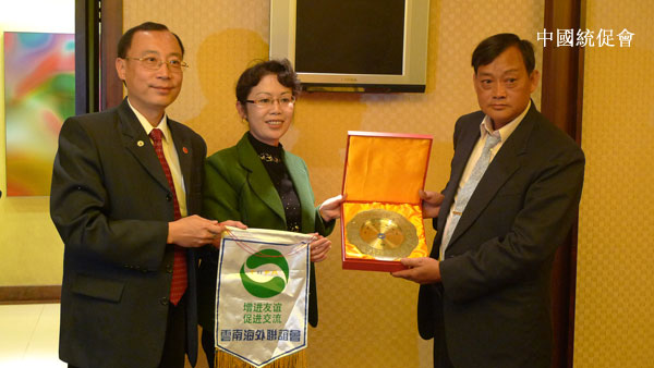 互贈紀念品,右為訪問團團長張振偉先生、左為中國統促會副秘書長王安南