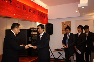總領(lǐng)館教育組白剛參贊銜領(lǐng)事接受學(xué)生捐款