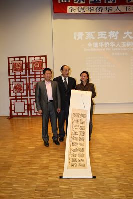 2010年4月27日晚,全德華僑華人聯(lián)合總會(huì)、全德華人社團(tuán)聯(lián)合會(huì)、旅德華僑華人中國(guó)和平統(tǒng)一促進(jìn)會(huì)、柏林中國(guó)婦女聯(lián)誼會(huì)等20多個(gè)僑團(tuán)以及中國(guó)留德學(xué)生學(xué)者聯(lián)合會(huì)等在柏林中國(guó)文化中心舉辦“情系玉樹(shù)、大愛(ài)無(wú)疆——全德華僑華人玉樹(shù)賑災(zāi)義演”活動(dòng)。中國(guó)駐德國(guó)大使吳紅波、領(lǐng)事部主任湯文娟參贊以及旅德華僑華人、留學(xué)生代表200余人出席。演出開(kāi)始前,播放了玉樹(shù)地震受災(zāi)以及救援人員奮勇抗災(zāi)記錄短片,之后全體人員肅立默哀1分鐘,深切悼念在玉樹(shù)地震中不幸遇難的同胞。
