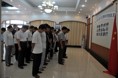 當(dāng)?shù)貢r(shí)間上午10點(diǎn),使館臨時(shí)代辦付吉軍帶領(lǐng)使館全體館員和家屬以及駐坦首席軍事專(zhuān)家辦公室人員集體默哀,深切哀悼舟曲遇難同胞。