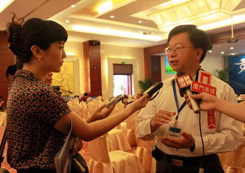 臺(tái)灣農(nóng)訓(xùn)協(xié)會(huì)秘書(shū)長(zhǎng)王志文接受海峽之聲記者任婧采訪、游碧濤攝
