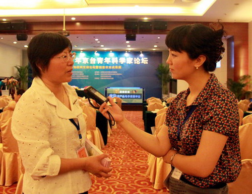 臺(tái)灣南投縣埔里鎮(zhèn)王素娥女士接受海峽之聲記者任婧采訪、游碧濤攝