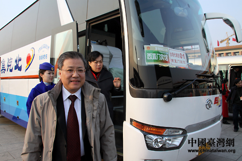 出席第十一屆全國(guó)人民代表大會(huì)第四次會(huì)議的臺(tái)灣團(tuán)代表抵達(dá)天安門廣場(chǎng)。(中國(guó)臺(tái)灣網(wǎng) 王偉 攝)