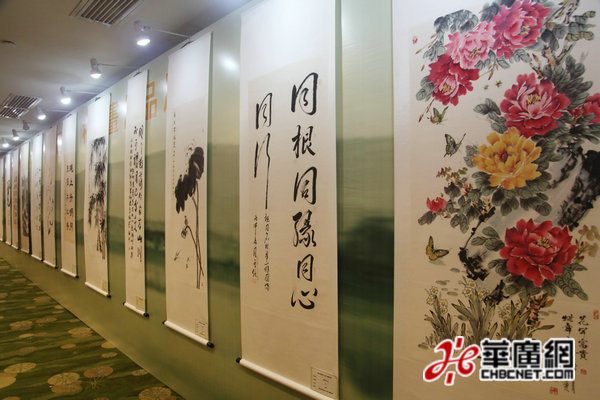 開幕式現場舉辦“中華情·兩岸緣”同名(同宗)村書畫作品展。(華廣網吳勇攝)