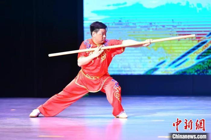 現場,兩岸武術選手借助“線上+線下”的方式進行武術展演,交流互鑒,共同傳承中華傳統文化。