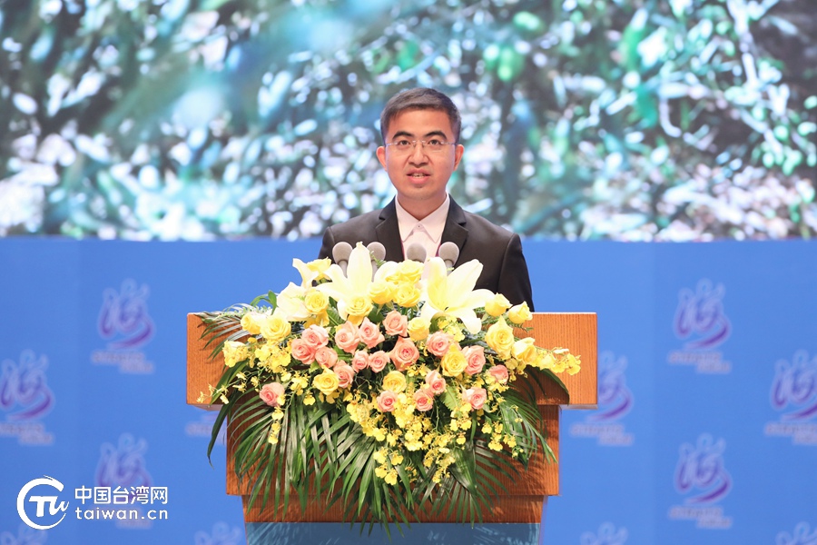 臺灣青年、臺灣單車天使協會理事長楊民忠在論壇大會上發言。(中國臺灣網 尹賽楠 攝)