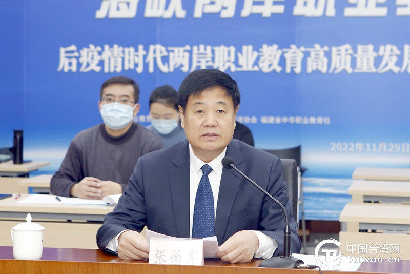 張伯軍在致辭中充分肯定了海峽論壇·海峽兩岸職業教育論壇多年來在促進兩岸職業教育界的交流與合作、推動兩岸職業教育融合發展等方面發揮的積極作用。他指出,本屆海峽兩岸職業教育論壇圍繞“后疫情時代兩岸職業教育高質量發展的機遇與挑戰”的主題,旨在引領后疫情時代技能人才培養模式變革,優化后疫情時代的政產學研結合與協同創新,促進后疫情時代兩岸職業教育交流合作,具有鮮明的時代特征和強烈的現實需求,對于提升兩岸職業教育發展水平,推動兩岸職業教育互學互鑒具有重要意義。他希望兩岸職教界同仁暢所欲言,集思廣益,提出真知灼見,為推動兩岸共同發展、同胞情感交流注入新的動力。