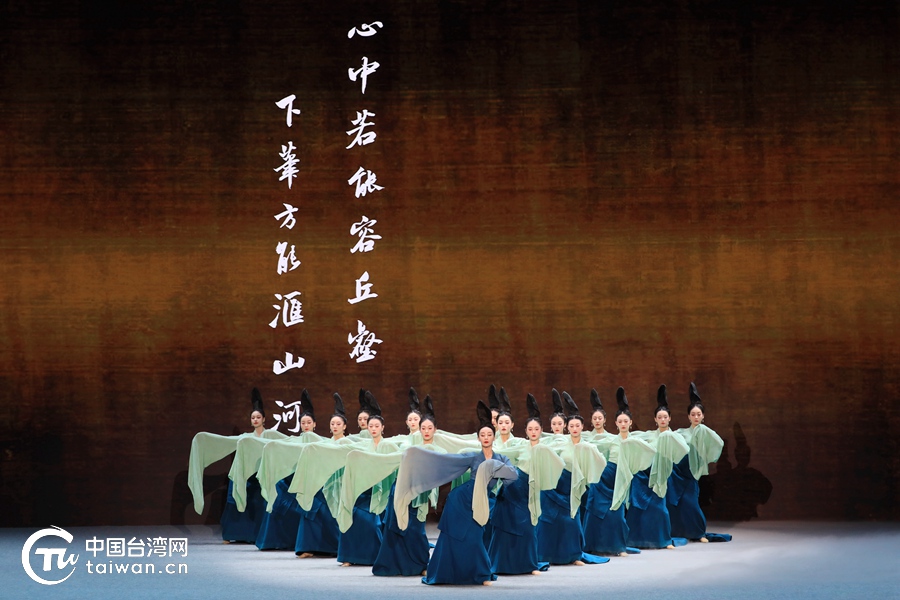 舞蹈《千里江山》展現(xiàn)青綠山水中國(guó)畫(huà)的匠心傳承、演繹中華江山的瑰麗畫(huà)卷。(中國(guó)臺(tái)灣網(wǎng)記者 尹賽楠 攝)