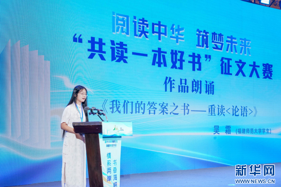 據了解,“共讀一本好書”征文大賽自今年3月啟動以來,得到了兩岸讀者的熱烈響應,共收到作品2326篇,其中來自大陸的作品1788篇,來自臺灣的作品538篇。在28日舉行的第十六屆海峽論壇·海峽閱讀大會開幕式上,兩岸多位參賽學生代表還上臺朗誦了自己的獲獎作品,通過分享閱讀體悟,表達青年一代踐行中華優秀傳統文化的信念與熱情。