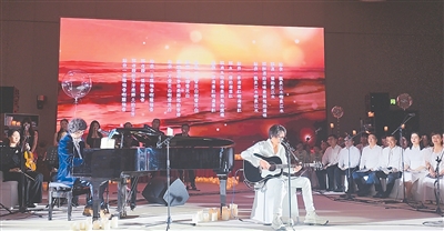 “文學之夜”詩歌音樂會演出現場的吉他彈唱《鄉愁四韻》。主辦方供圖