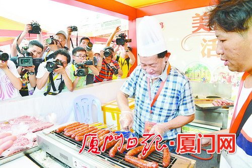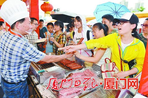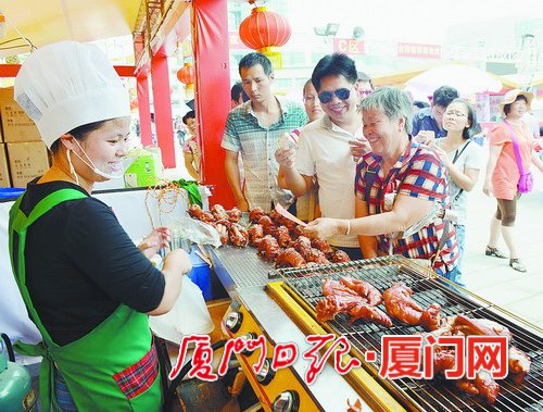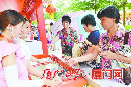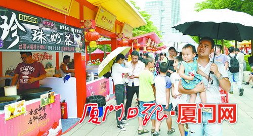 廈門網(wǎng)-廈門日?qǐng)?bào)訊(文/記者 楊繼祥 林岑 圖/記者 黃曉珍)兩岸特色廟會(huì),歷屆都是海峽論壇的“重頭戲”,也是最具人氣的活動(dòng)之一。昨日,兩岸特色廟會(huì)在海滄市民廣場(chǎng)鳴鑼開市,首日即迎來(lái)市民和游客15萬(wàn)人次。本屆廟會(huì)共設(shè)攤位210個(gè),其中170個(gè)來(lái)自臺(tái)灣,覆蓋臺(tái)灣21個(gè)縣市知名美食,規(guī)模之大超越往屆。