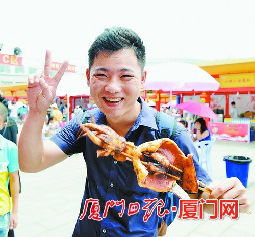 “前兩屆廟會(huì)我們都來(lái)參加,品嘗了許多‘古早味’臺(tái)灣美食。今年的廟會(huì)又帶來(lái)了更多的驚喜。”來(lái)自島內(nèi)的市民林先生一邊啃著萬(wàn)鸞醬烤豬腳,一邊對(duì)記者說(shuō)。放眼望去,整個(gè)海滄市民文化廣場(chǎng)熙熙攘攘,成了一片歡樂(lè)的海洋。