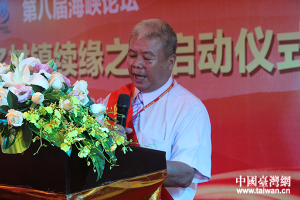 “第八屆海峽論壇 閩臺同名村鎮(zhèn)續(xù)緣之旅”啟動儀式上,來自臺灣新竹縣寶山鄉(xiāng)雙溪村的村長許秋天發(fā)言。(中國臺灣網(wǎng) 蕪同 攝)
