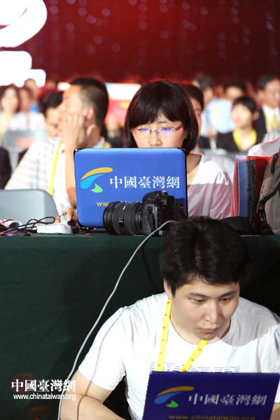 中國(guó)臺(tái)灣網(wǎng)記者在論壇開幕式現(xiàn)場(chǎng)快速發(fā)稿
