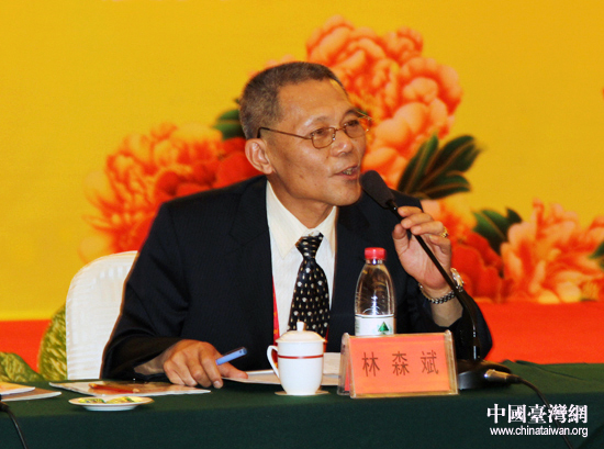 臺灣調解委員會聯合總會監事主席林森斌在交流會上講話。(中國臺灣網 王思羽 攝)