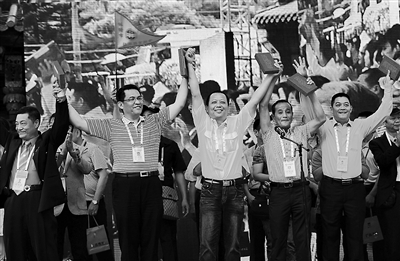 兩岸“同名村”一家親聯(lián)誼活動(dòng),近日在廈門市集美區(qū)板橋村舉行,與大陸祖地“同根、同源、同名”的臺灣“同名村”村里長們,與大陸鄉(xiāng)親、宗族長輩共敘親情。新華社記者 張國俊攝