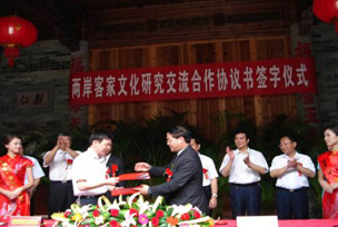 22日上午,兩岸客家文化研究院揭牌剪彩儀式在世界文化遺產永定 “振福樓”舉行。同時,永定兩岸客家文化研究院與臺灣大學客家研究中心締結了交流合作關系。