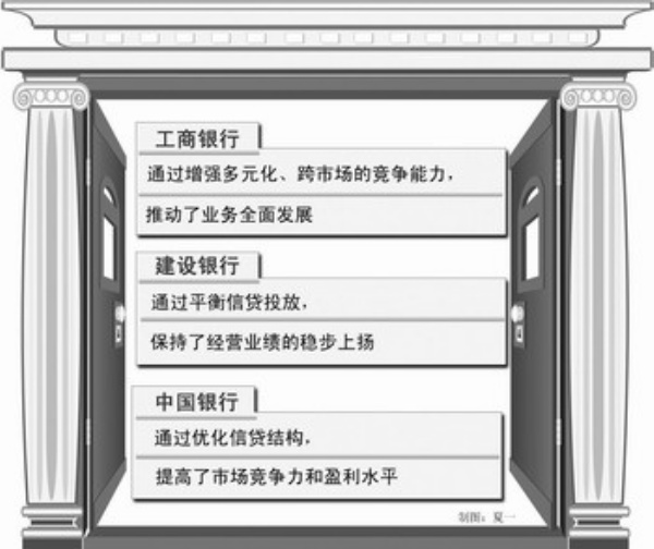 盡管2009年面臨國際金融危機擴散蔓延帶來的嚴峻形勢,但三大銀行抓住危中之機,加快改革創新,調整經營結構,改進金融服務,保持了自身健康平穩發展,經營業績好于預期,繼續保持了在高起點上的盈利成長性。對商業銀行而言,只有堅持積極審慎的經營方針,始終牢牢把握住風險控制的主動權,在復雜的經營環境中贏得市場先機,把各項業務扎實穩步推進,才能為未來的可持續發展奠定堅實基礎。