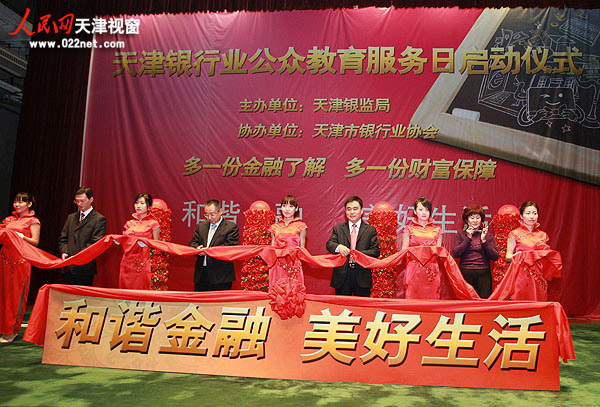 人民網·天津視窗11月28日電:11月28日,“2010年天津市銀行業公眾教育服務日”活動正式啟動。當天,由天津銀監局主辦,天津銀行業協會協辦的啟動儀式在天津大禮堂隆重舉行。本次活動是中國銀監會在全國范圍內開展的“2010年中國銀行業公眾教育服務日”活動的一部分;顒又黝}為“和諧金融,美好生活”,目的是向公眾普及金融知識,提高公眾識別和防范金融風險的能力,加強金融消費者保護,讓廣大金融消費者“多一份金融了解,多一份財富保障”。