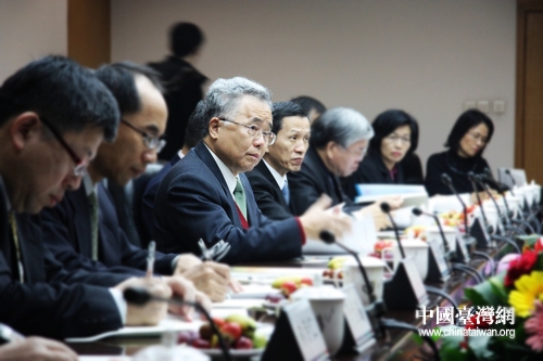 在河北銀行總部辦公室內,以許嘉棟為首的“臺灣金融團”成員們對河北銀行充滿興趣。(中國臺灣網 馬迪 攝)