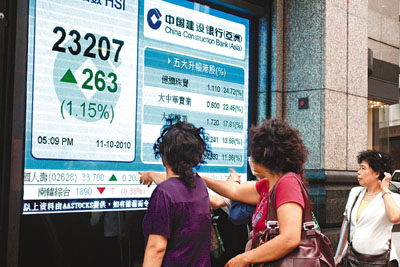 中新網10月12日電 據香港文匯報報道,港股11日六連升,收升263點至23,207點,為08年6月中即28個月以來的新高,成交亦近千億元。多只藍籌皆創一年新高,其中港交所直逼170元,創逾兩年半高位。