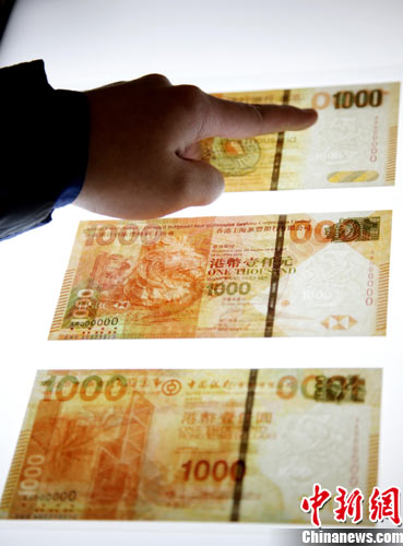 金管局輔助服務處主管陳葉小明表示,金管局將會聯同三家發鈔銀行(渣打銀行、礇豐銀行及中國銀行(香港)),于下月七日,按市場需要分批發行新設計的一千元鈔票。她表示,現行于二○○三年發行的千元鈔票仍然流通,但殘破的舊款鈔票會逐漸于三至四年內被銀行回收,并以新鈔全面取締。她預計五百元的新鈔,可于明年二月的農歷新年前推出,而一百、五十及二十元新鈔會分批于明年年中至二○一二年推出。