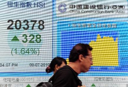 7月9日,行人從香港中環(huán)一家銀行的恒生指數(shù)電子顯示屏前走過。當(dāng)日,香港恒生指數(shù)收盤大漲328.10點(diǎn),報(bào)20378.66點(diǎn),漲幅1.64%。新華社記者宋振平攝