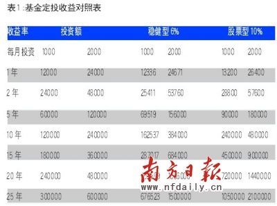 表1是按照基金定投的方式,每月分別準備1000元、2000元,按照收益率6%和10%計算得到的實際收益,大家可以對照下自己適合那種投資方式,以及需要準備的年限籌劃自己的退休養老金。