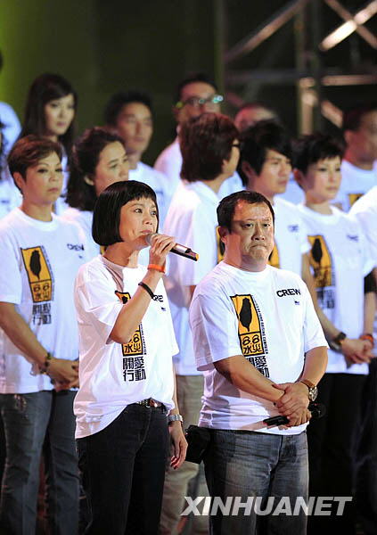 8月17日,在香港舉行的賑災(zāi)義演中,臺灣藝人張艾嘉(左)與香港藝人曾志偉主持義演晚會(huì)。新華社記者陳鐸攝